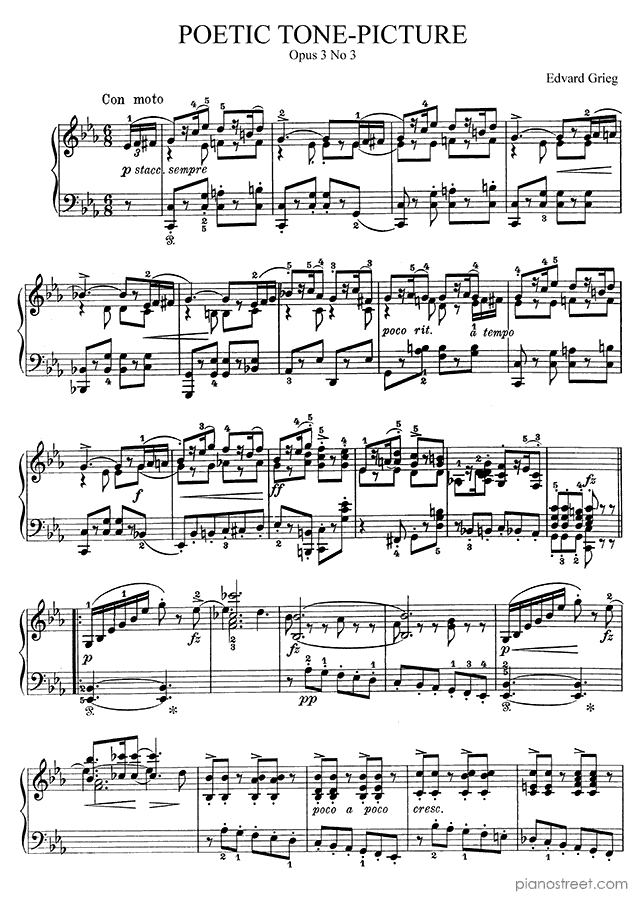 Classical piano sheet music by Grieg to download: Poetic Tone-Picture Op. 3 No. 3 in the key of This piece has difficulty level 7 in the category Piece