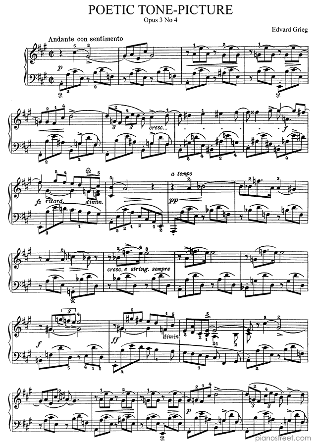 Poetic Tone-Picture in A Major, Op. 3 No. 4 by the composer Edvard Grieg who lived from 1843 to 1907.