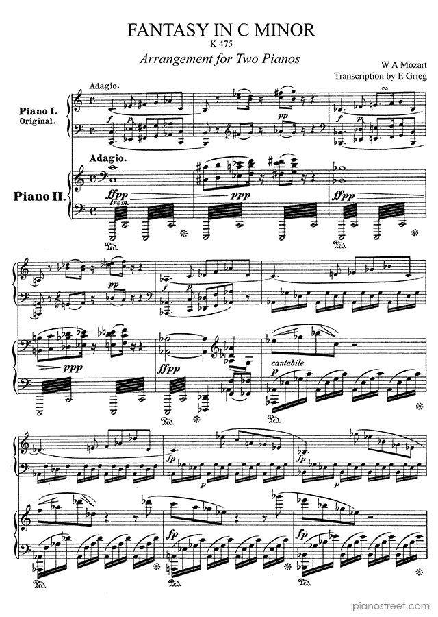 Fantasy in C minor K 475 by Mozart arrangement for Two Pianos in C Minor by Edvard Grieg - piano sheet music to download and print instantly.