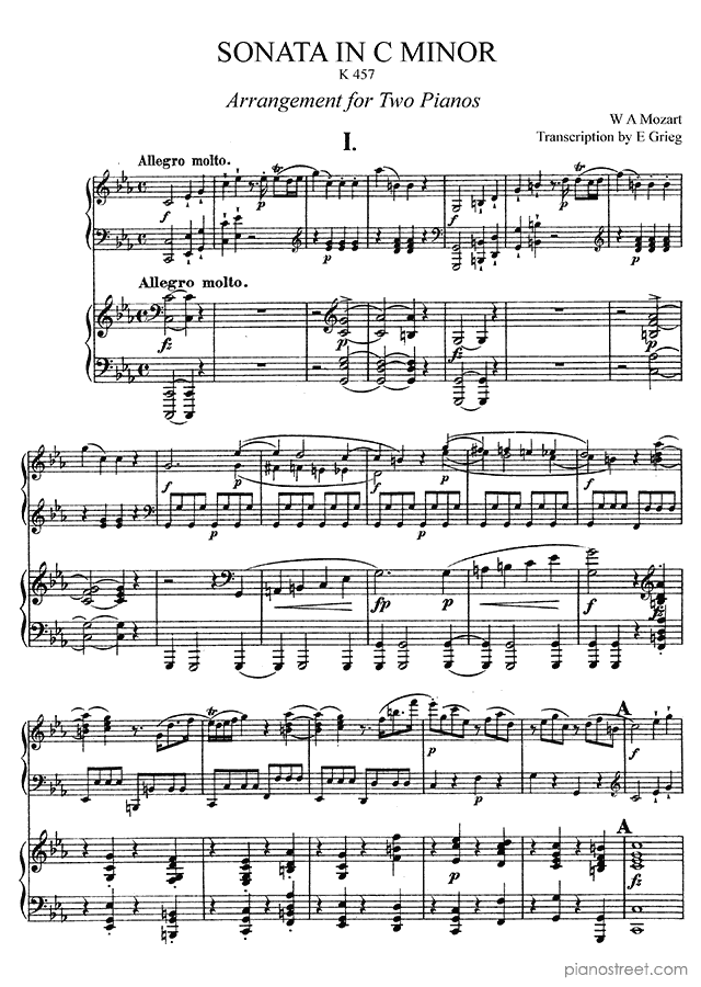 DOWNLOAD: Edvard Grieg - Sonata in C minor K 457 by Mozart arrangement for Two Pianos in C Minor ( by Grieg). Piano sheet music to print immediately or to view in mobile devices.