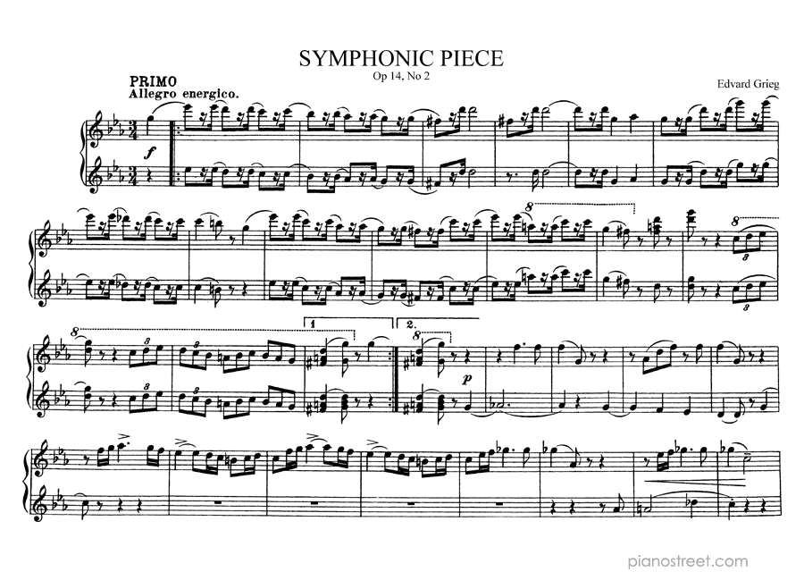 DOWNLOAD: Edvard Grieg - Symphonic Piece Op. 14 No. 2 in C Minor ( from 2 Symphonic Pieces by Grieg). Piano sheet music to print immediately or to view in mobile devices.