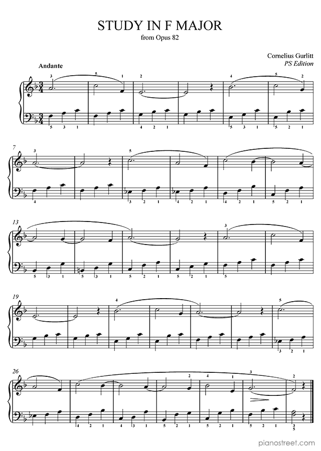 Study in F Major in F Major, Op. 82 by the composer Cornelius Gurlitt who lived from 1820 to 1901.