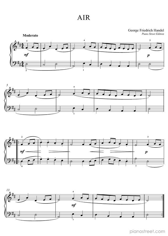 Georg Friedrich Handel: Air in D Major - piano sheet music to print instantly. This piece is level 1 and was composed during the Baroque period.