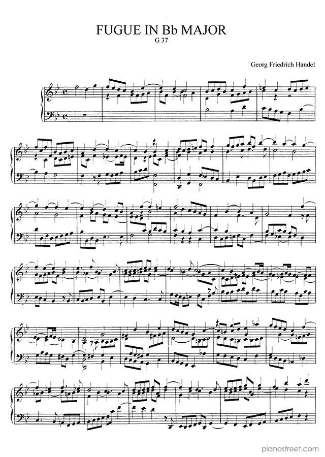 Georg Friedrich Handel: Fugue (G 37) in B-flat Major - piano sheet music to print instantly. This piece is level 6 and was composed during the Baroque period.