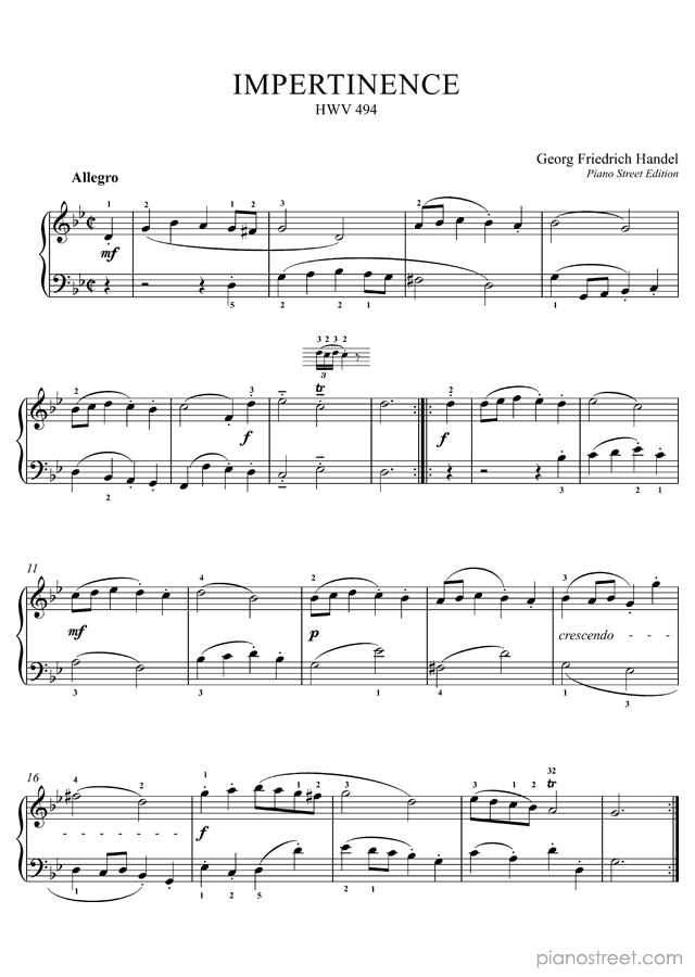 Handel: Impertinence in G Minor (published in 1705) . DOWNLOAD piano sheet music from Piano Street digital sheet music library.