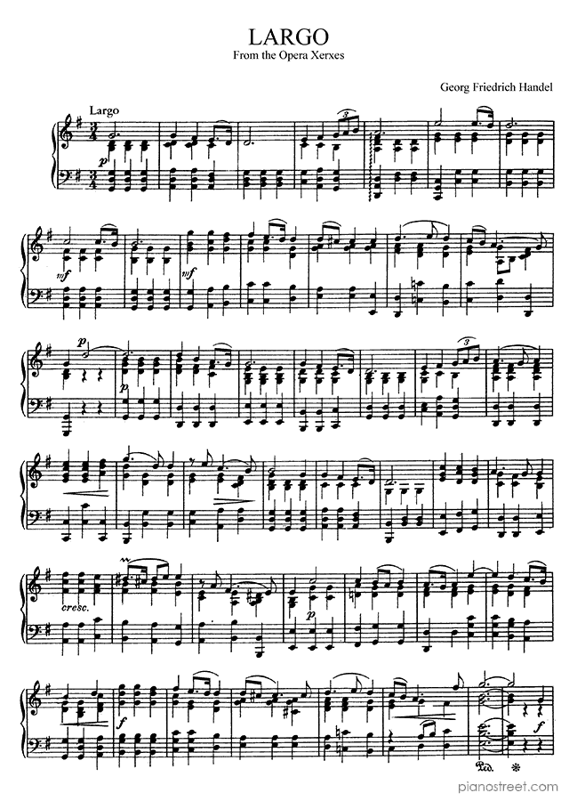 Handel: Largo from Xerxes in G Major . DOWNLOAD piano sheet music from Piano Street digital sheet music library.