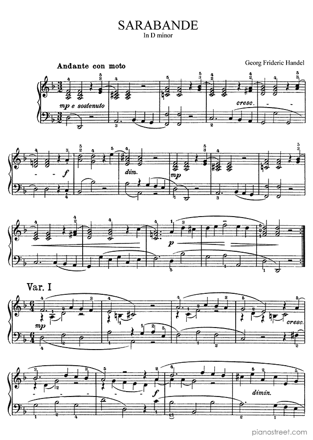 Downloadable piano sheet music by Georg Friedrich Handel to print: Sarabande in D Minor