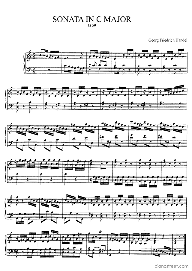 Sonata (G 59) in C Major - is a piano piece by the baroque composer Georg Friedrich Handel who lived between the years 1685 and 1759.
