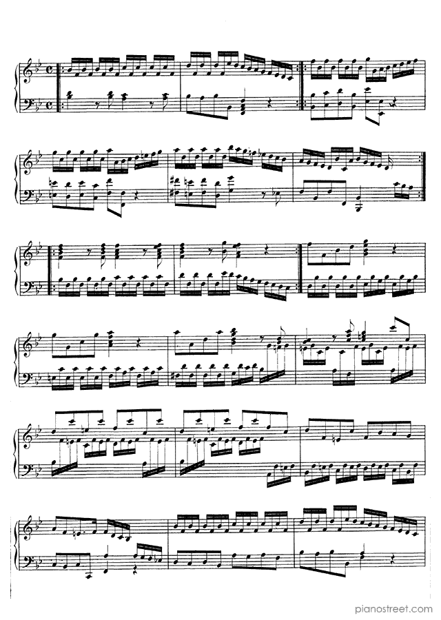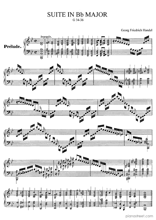Piano sheet music and recordings. This piece is by Georg Friedrich Handel: Suite (G 34-36) in B-flat Major . Level 5, Period: Baroque