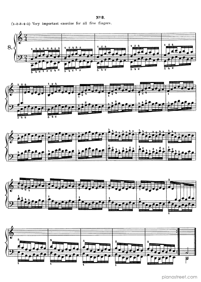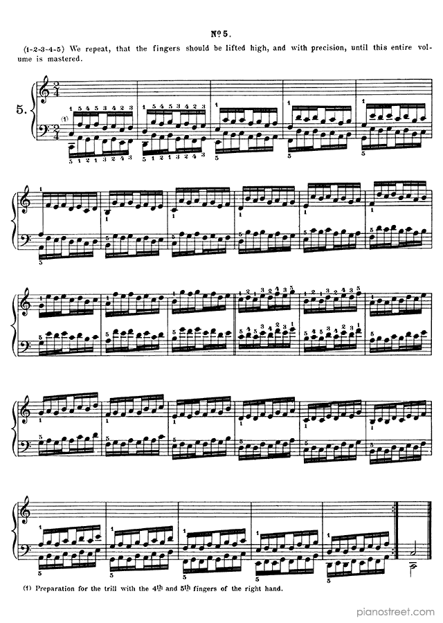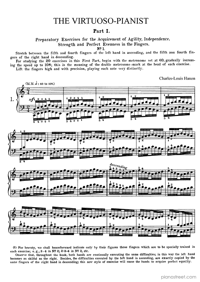 The Virtuoso Pianist Part 1 (1-20), by the composer Charles Louis Hanon who lived from 1819 to 1900.