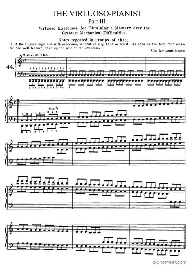 Charles Louis Hanon: The Virtuoso Pianist Part 3 (44-60) - piano sheet music to print instantly. This piece is level n/a and was composed during the n/a period.