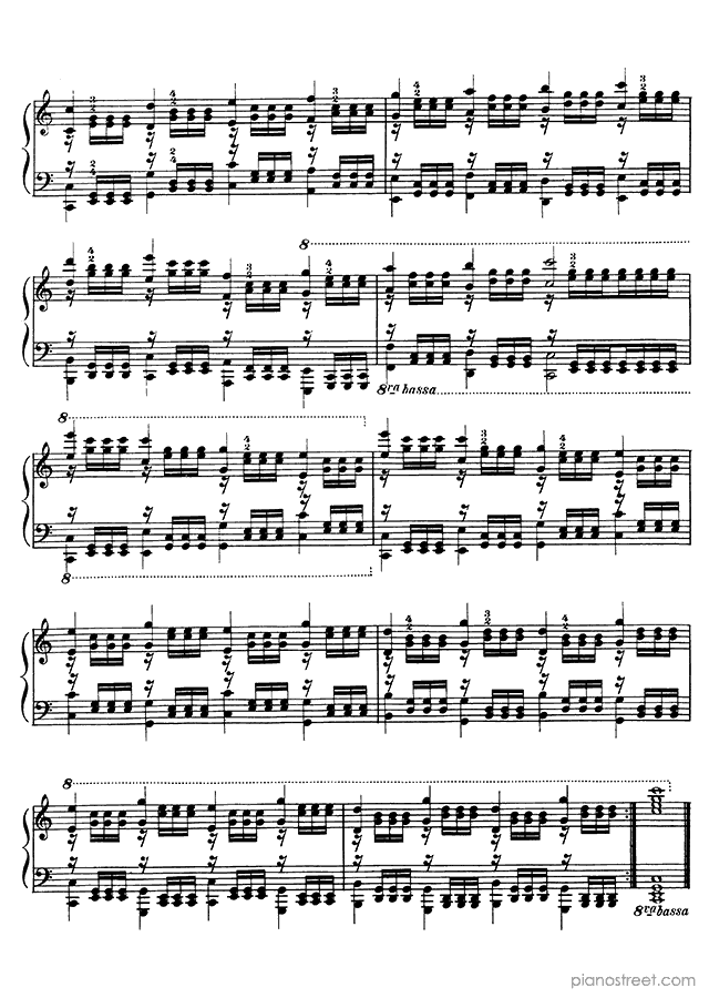 This piece is composed by Charles Louis HanonIt was written during the n/a period. Title: The Virtuoso Pianist Part 3 (44-60), . The difficulty level if graded by ABRSM would be approximately n/a and it belongs to the n/a period.