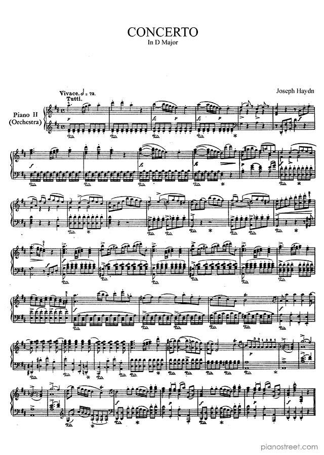 Downloadable piano sheet music from Concertos by Joseph Haydn to print: Piano Concerto No. 11 in D Major (published in 1782)