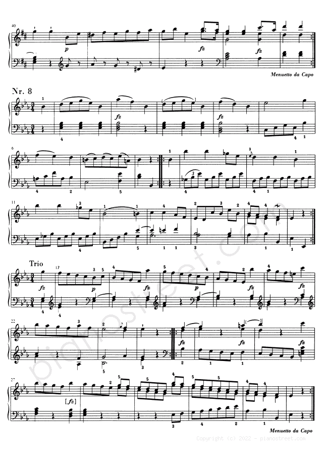 Piano sheet music and recordings. This piece is from Dances by Joseph Haydn: 12 Minuets Hob. IX: 11 (published in 1792) . Level 7, Period: Classical