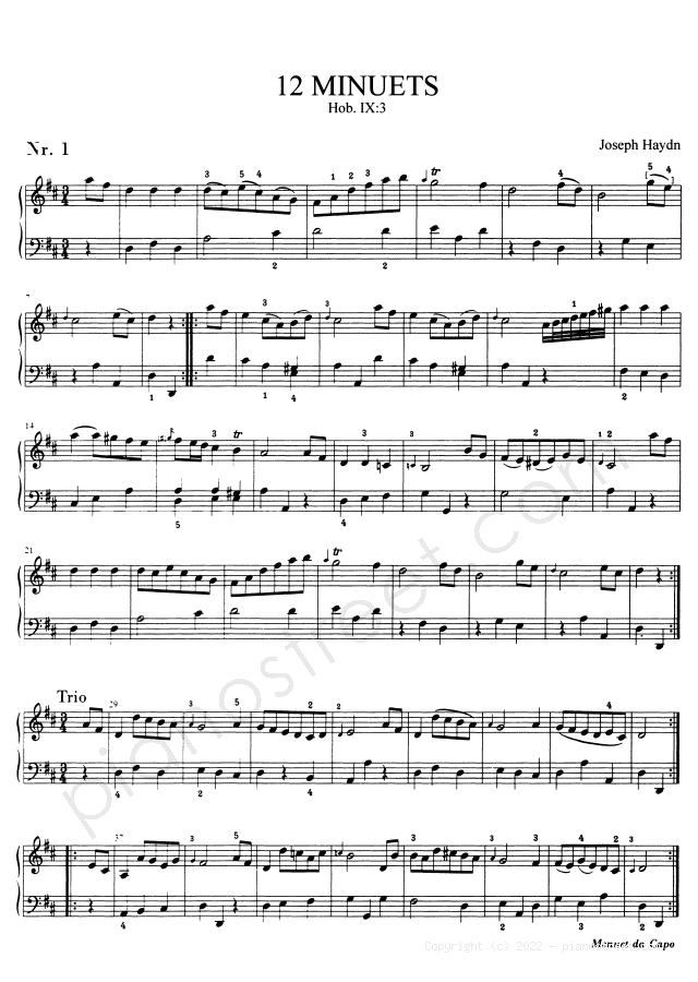 Classical piano sheet music by Haydn to download: 12 Minuets Hob. IX: 3 in the key of This piece has difficulty level 4 in the category