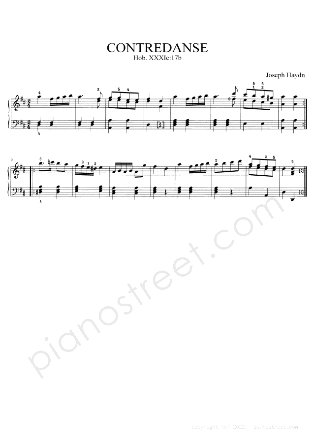 Haydn: Contredanse Hob. XXXIc:17b in D Major . DOWNLOAD piano sheet music from Piano Street digital sheet music library.