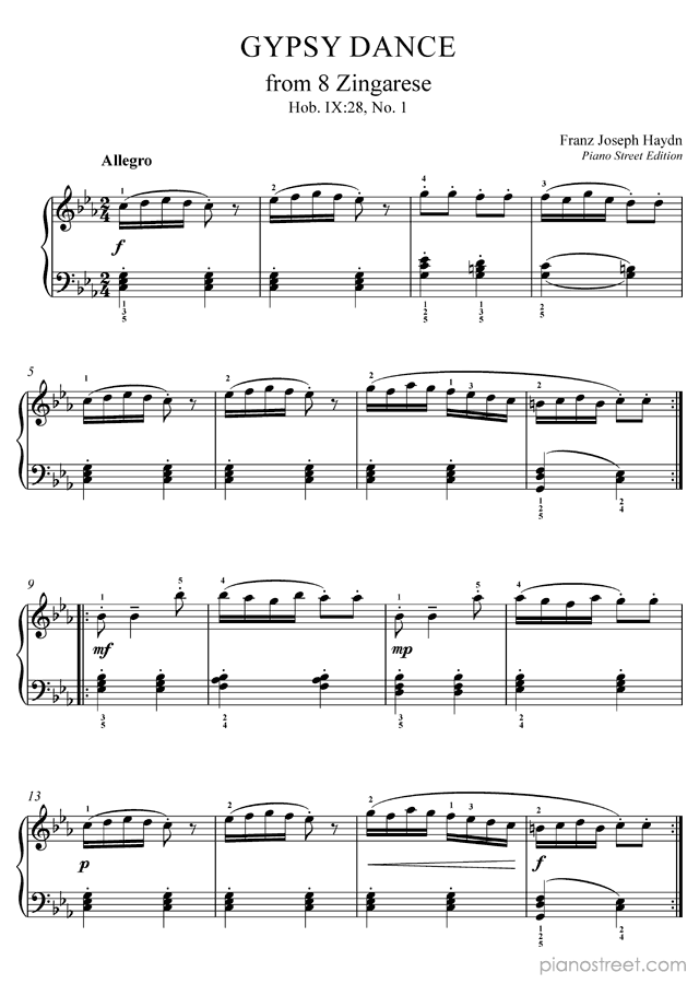 DOWNLOAD: Joseph Haydn - Gypsy Dance Hob. 9 No. 28 in C Minor ( by Haydn). Piano sheet music to print immediately or to view in mobile devices.