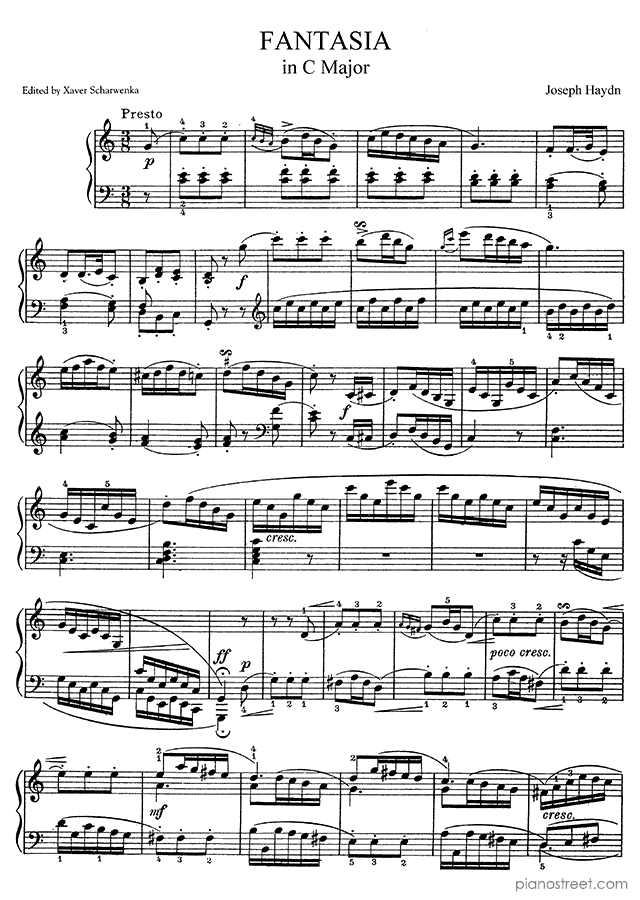 Classical piano sheet music by Haydn to download: Fantasia Hob. 17 No. 4 in the key of This piece has difficulty level 8 in the category Piece