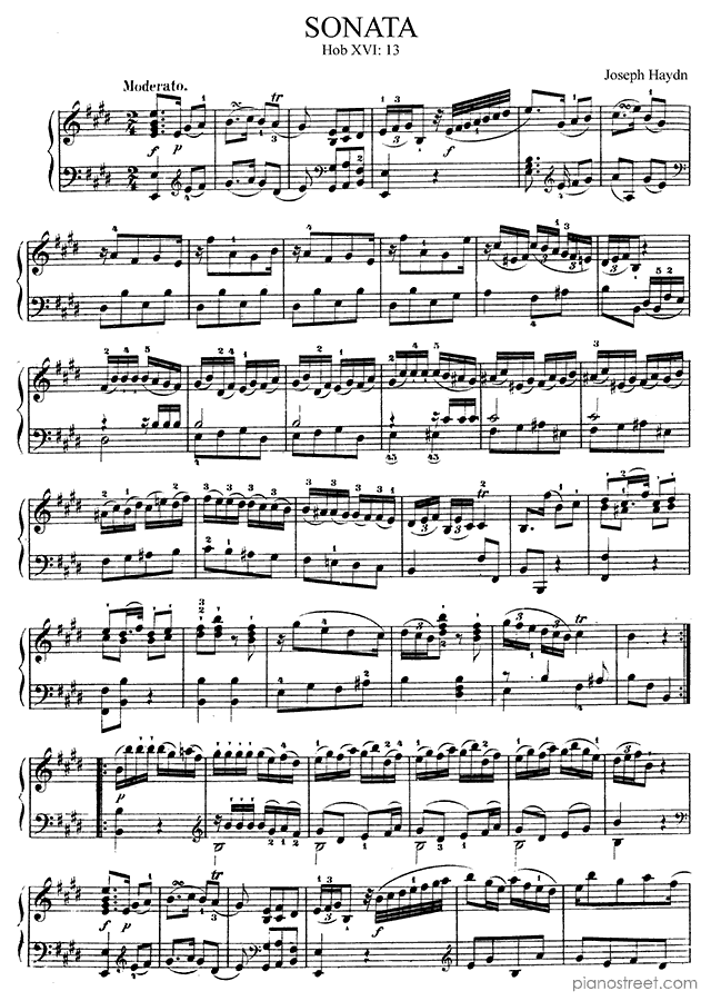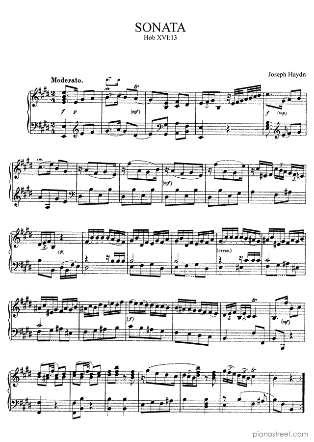 Classical piano sheet music by Haydn to download: Sonata Hob. 16 No. 13 in the key of This piece has difficulty level 5 in the category Sonata