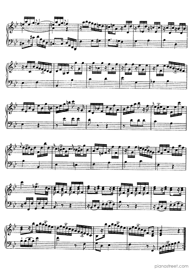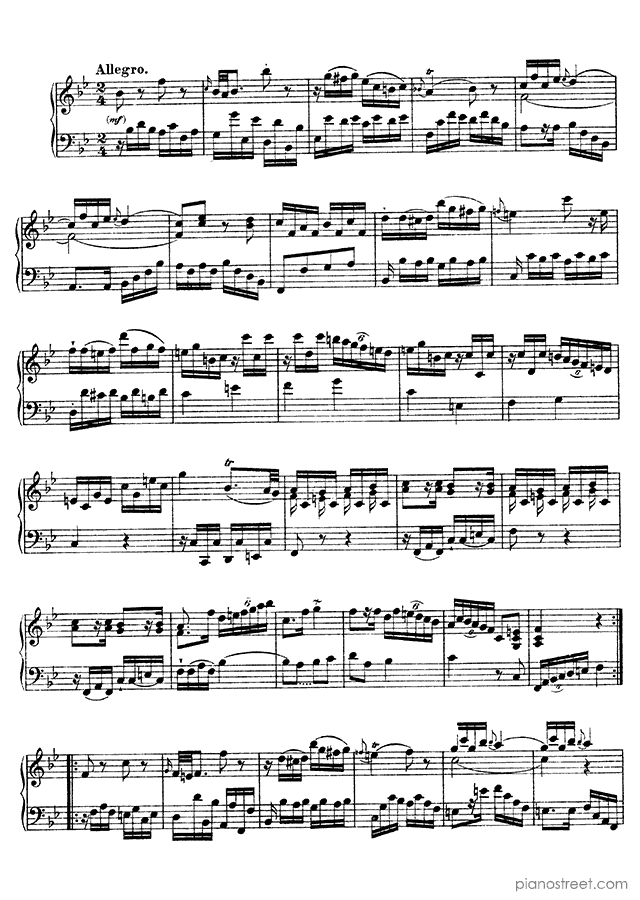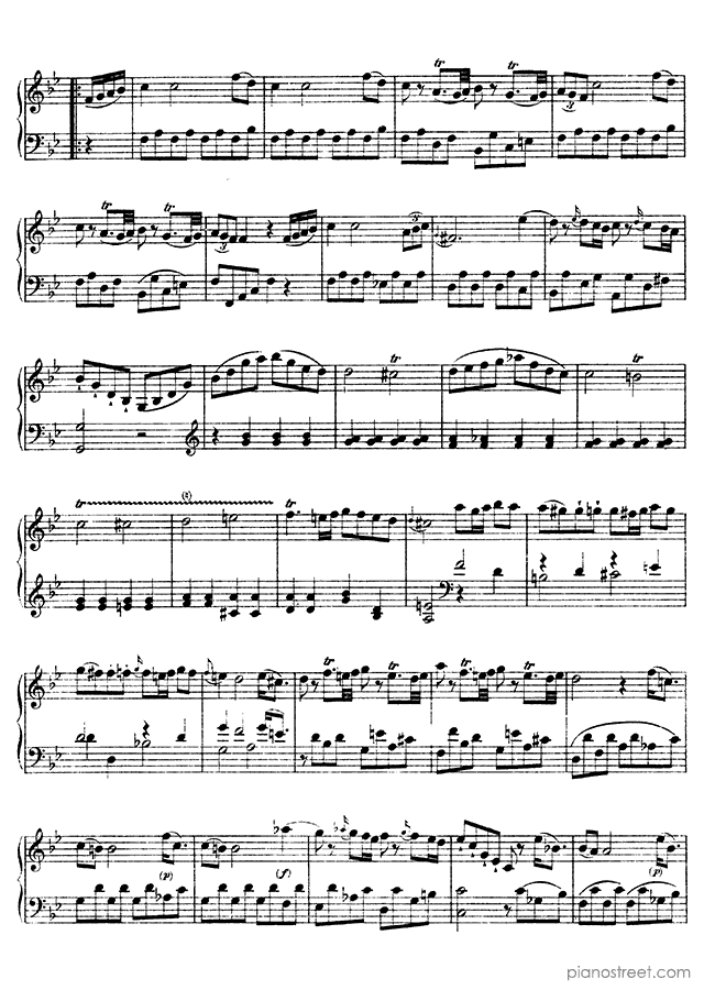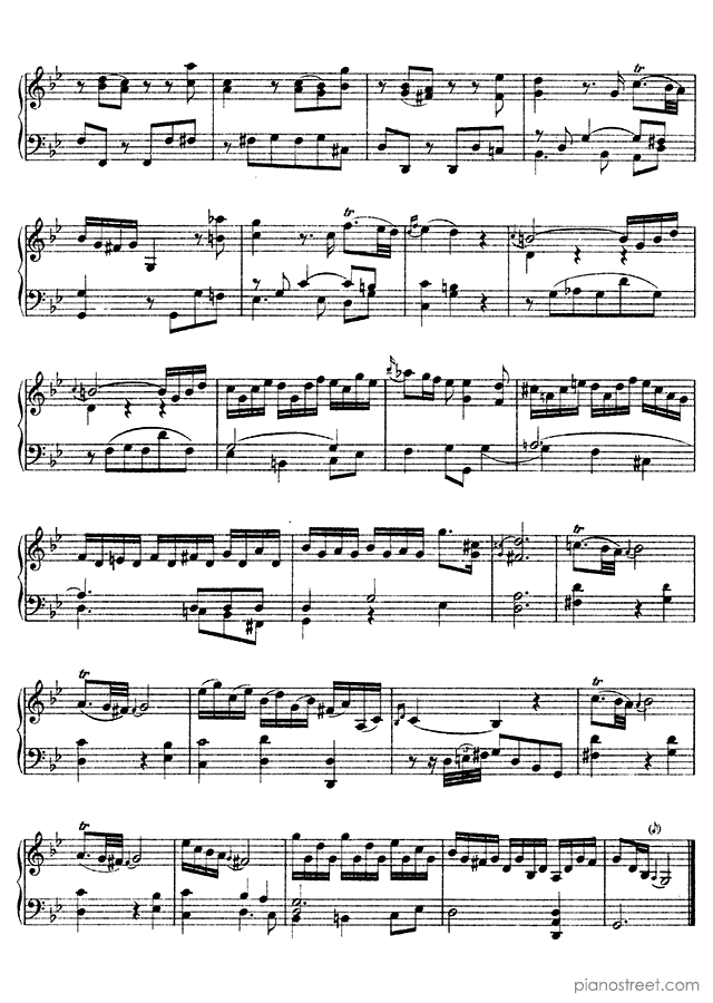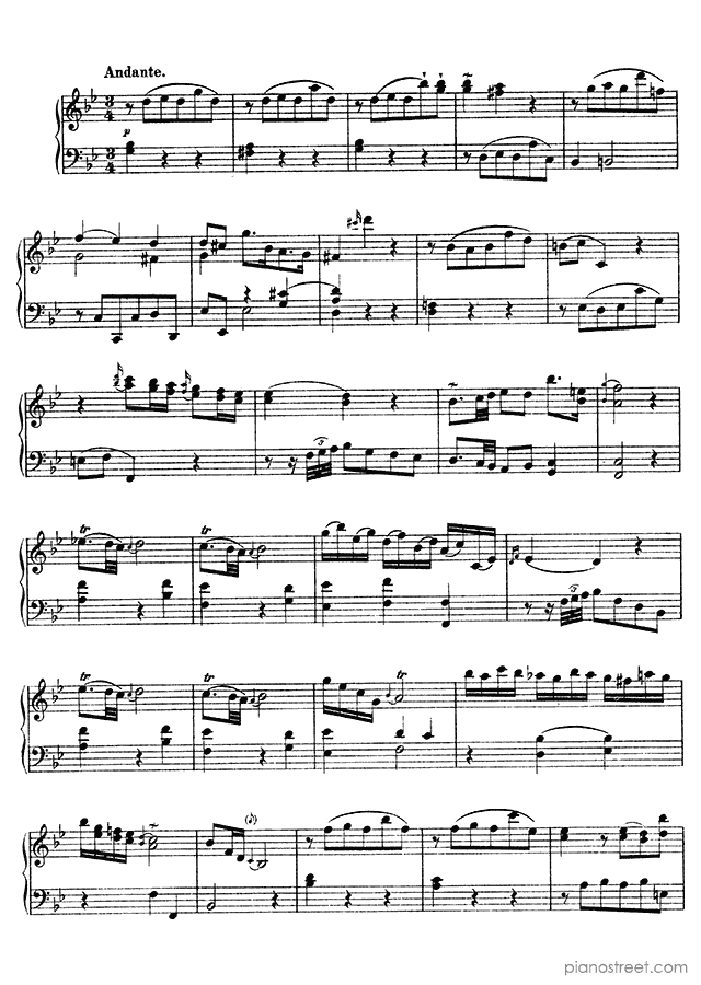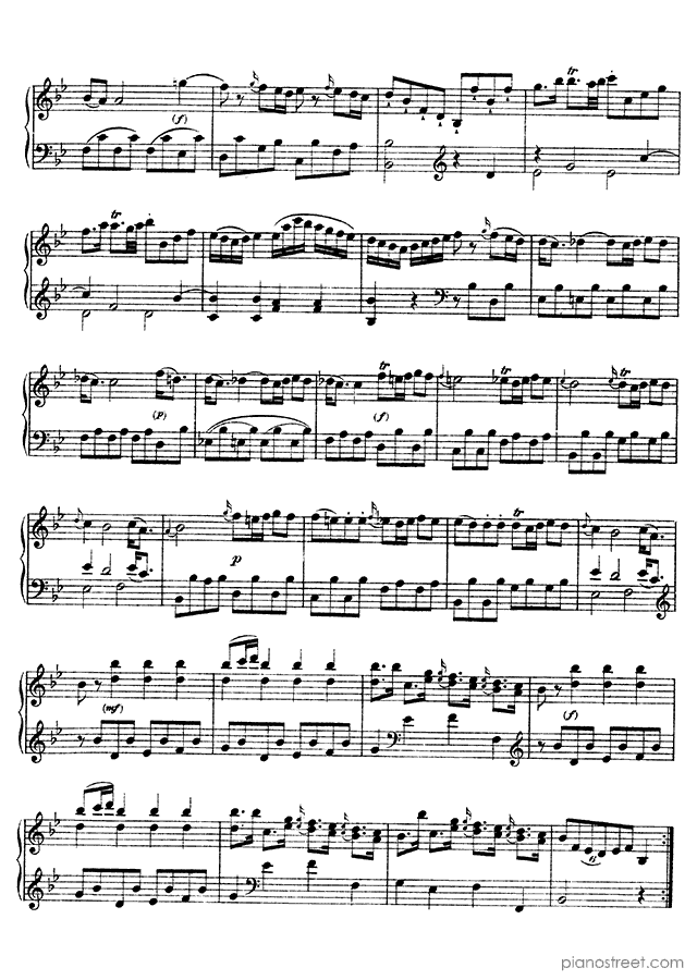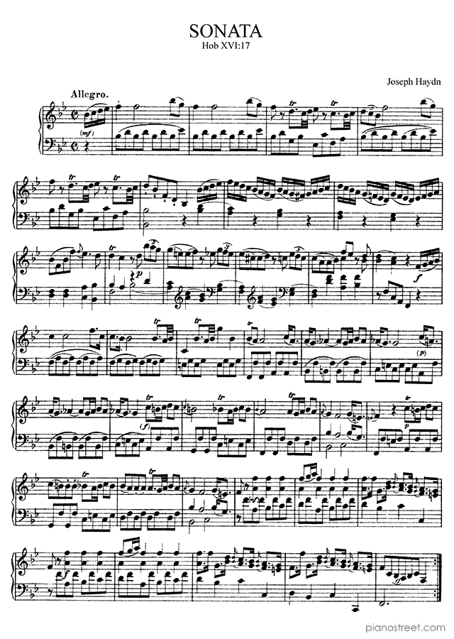 Joseph Haydn: Sonata Hob. 16 No. 17 in B-flat Major from Sonatas - piano sheet music to print instantly. This piece is level 6 and was composed during the Classical period.