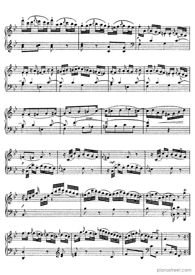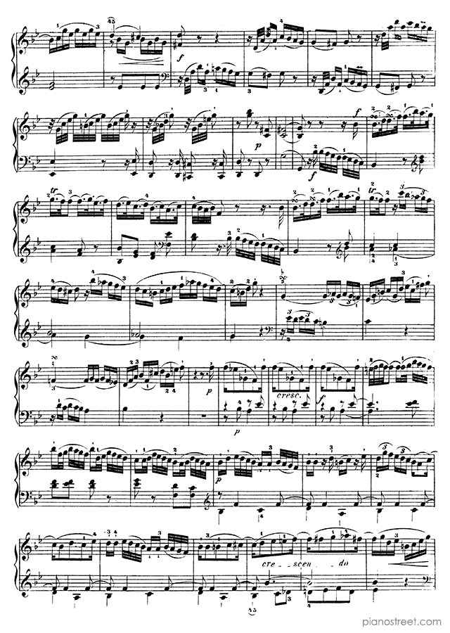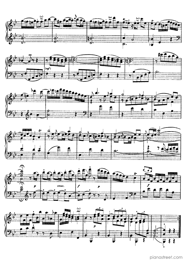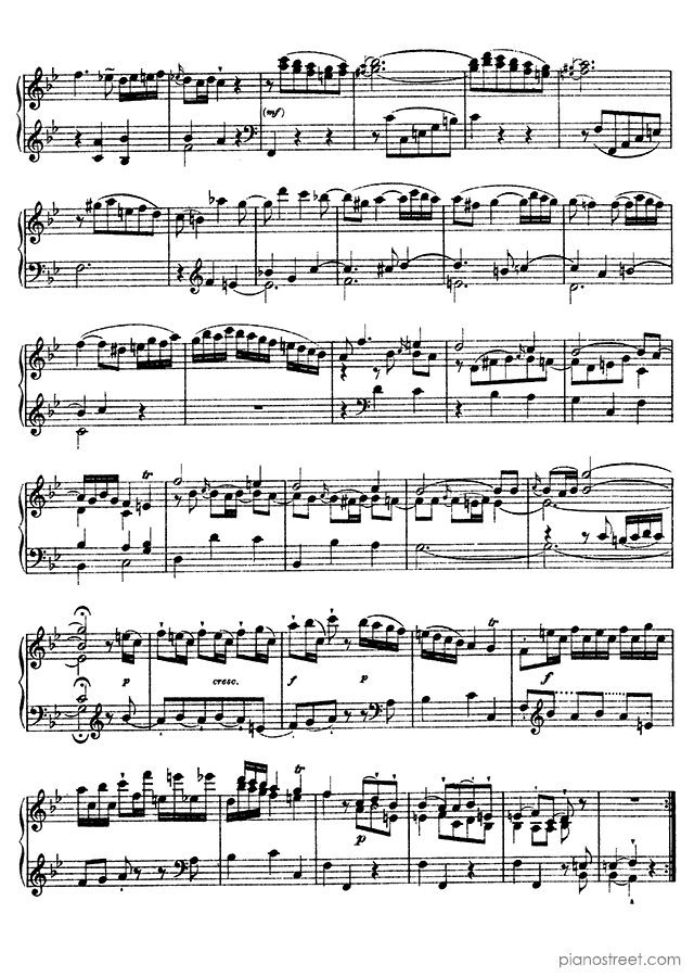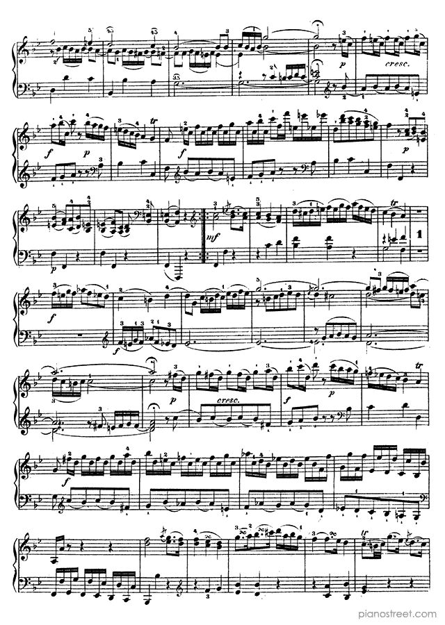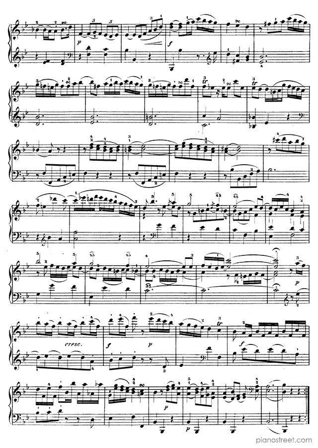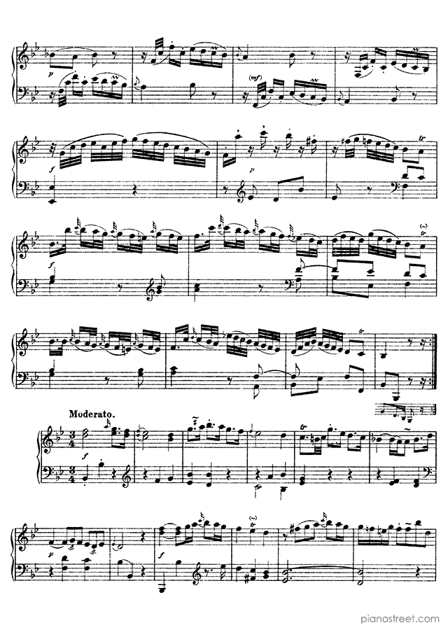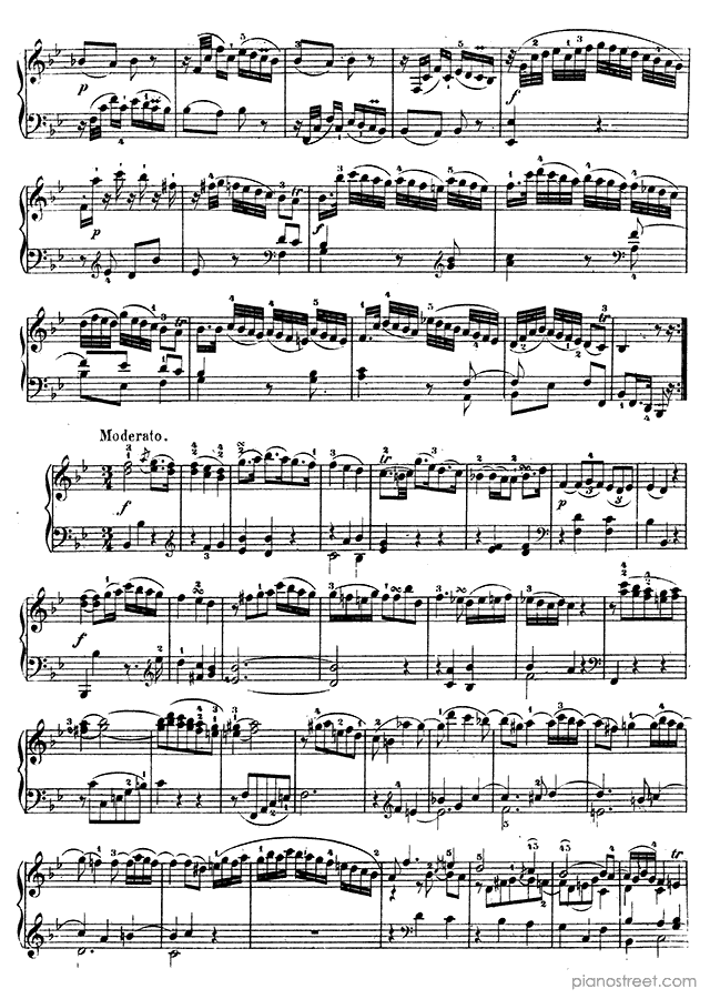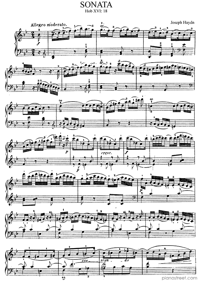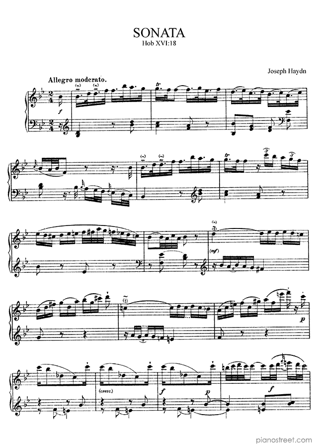 Piano sheet music and recordings. This piece is from Sonatas by Joseph Haydn: Sonata Hob. 16 No. 18 in B-flat Major (published in 1767) . Level 8, Period: Classical