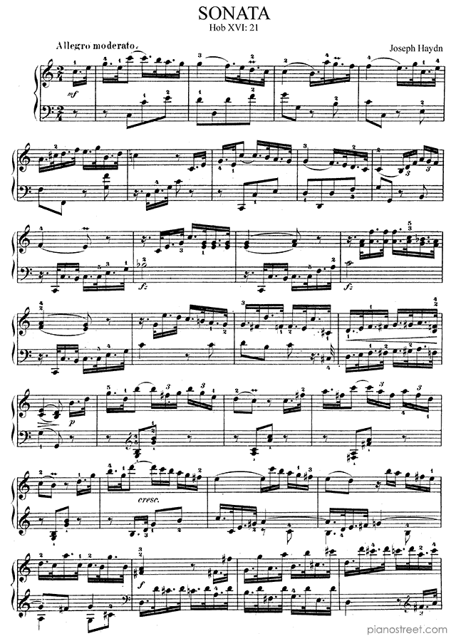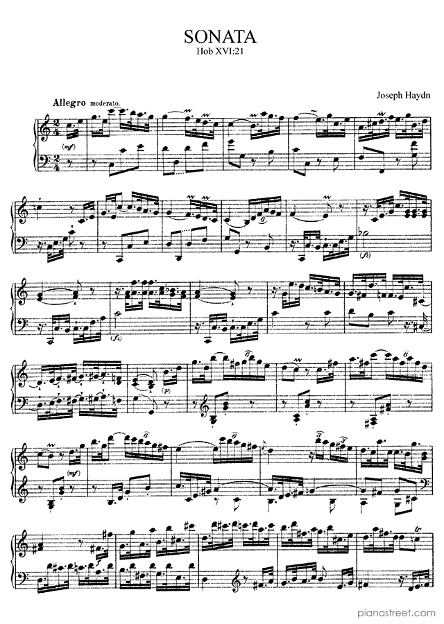 Haydn: Sonata Hob. 16 No. 21 in C Major (published in 1773) . DOWNLOAD piano sheet music from Piano Street digital sheet music library.