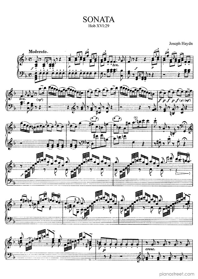 DOWNLOAD Sonata in F Major Hob. 16 No. 29 by Joseph Haydn (published in 1776) . High quality classical piano scores from the Piano Street sheet music library.