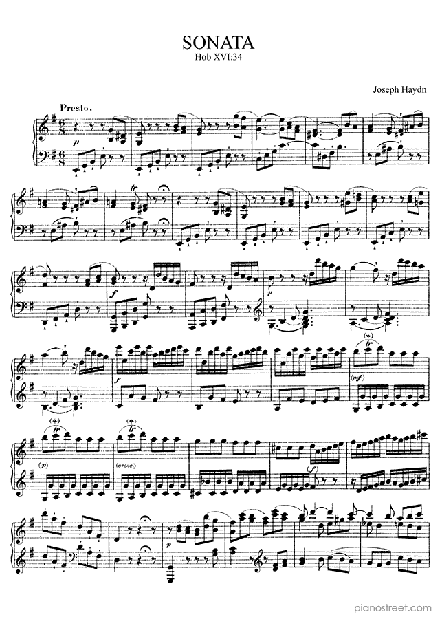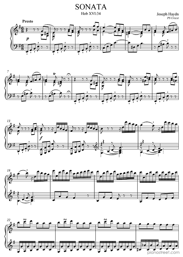 Classical piano sheet music by Haydn to download: Sonata Hob. 16 No. 34 in the key of This piece has difficulty level 7 in the category Sonata