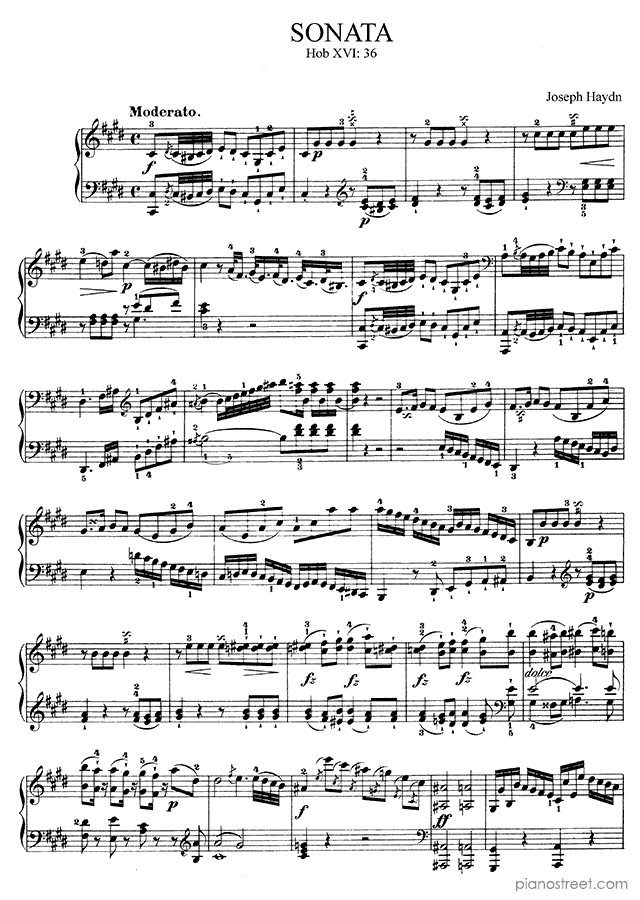 Piano sheet music and recordings. This piece is from Sonatas by Joseph Haydn: Sonata Hob. 16 No. 36 in C-sharp Minor (published in 1780) . Level 8, Period: Classical