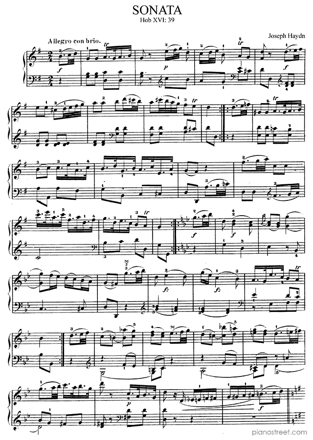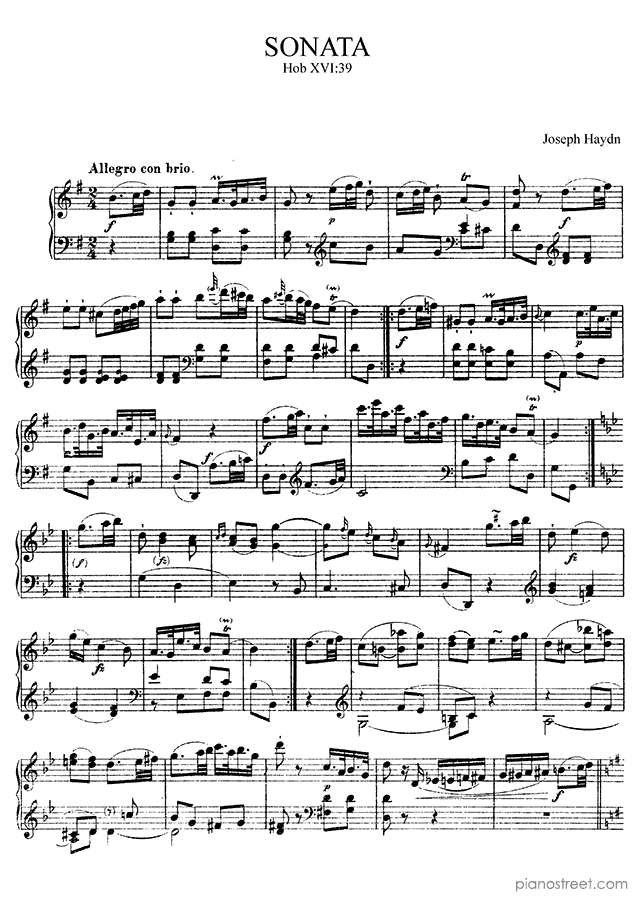 Sonata in G Major Hob. 16 No. 39 by Joseph Haydn. Sheet music and recordings of thousands of piano pieces by Joseph Haydn and many other famous composers to view in your digital device, print out or listen to.