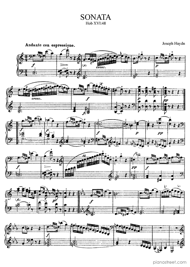 DOWNLOAD Sonata in C Major Hob. 16 No. 48 by Joseph Haydn (published in 1789) . High quality classical piano scores from the Piano Street sheet music library.