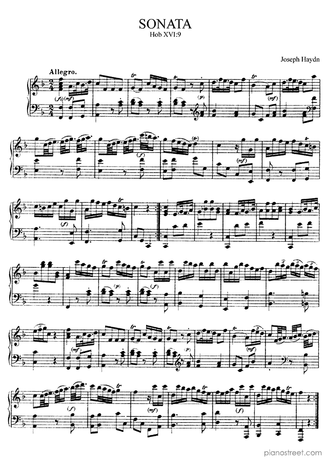 DOWNLOAD: Joseph Haydn - Sonata Hob. 16 No. 9 in F Major ( from Sonatas by Haydn). Piano sheet music to print immediately or to view in mobile devices.