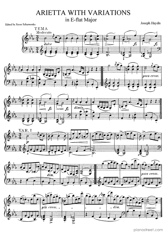 DOWNLOAD: Joseph Haydn - Arietta with Variations Hob. 17 No. 3 in E-flat Major ( from Variations by Haydn). Piano sheet music to print immediately or to view in mobile devices.