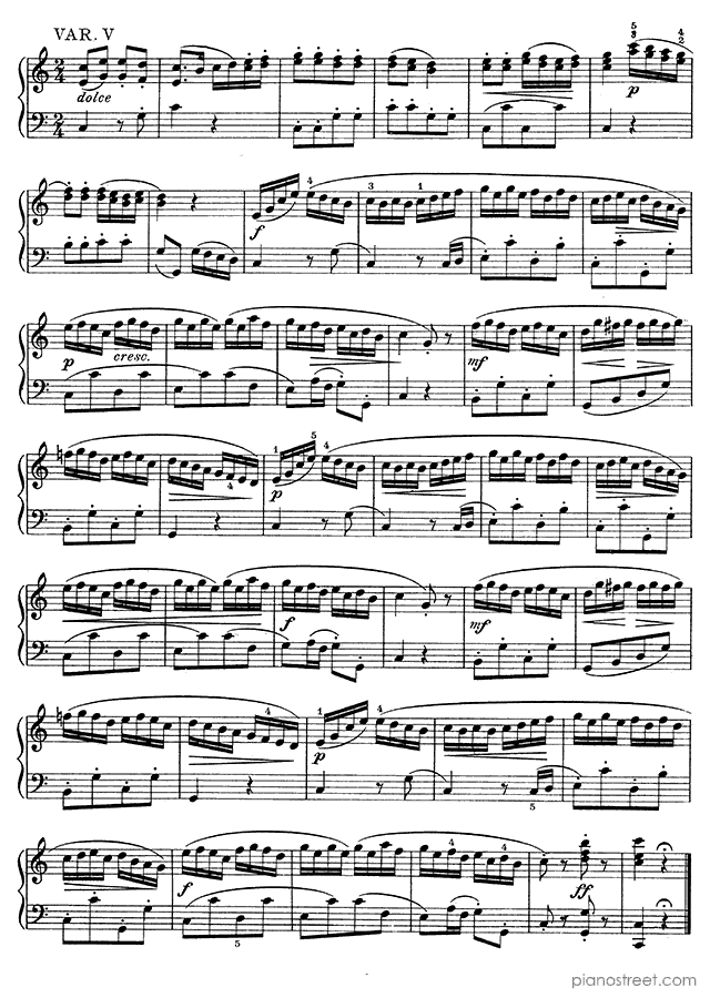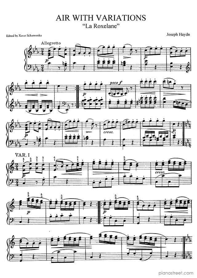 Piano sheet music downloads and recordings. This piece is from Variations by Joseph Haydn: La Roxelane - Air with Variations Hob. 1 No. 63 in C Minor . Level 7, Period: Classical