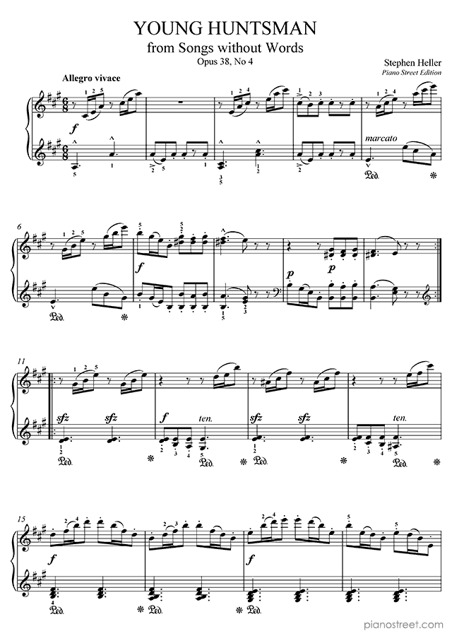 Young Huntsman in A Major Op. 138 No. 4 by Stephen Heller. Sheet music and recordings of thousands of piano pieces by Stephen Heller and many other composers to view in digital devices, print or listen to.