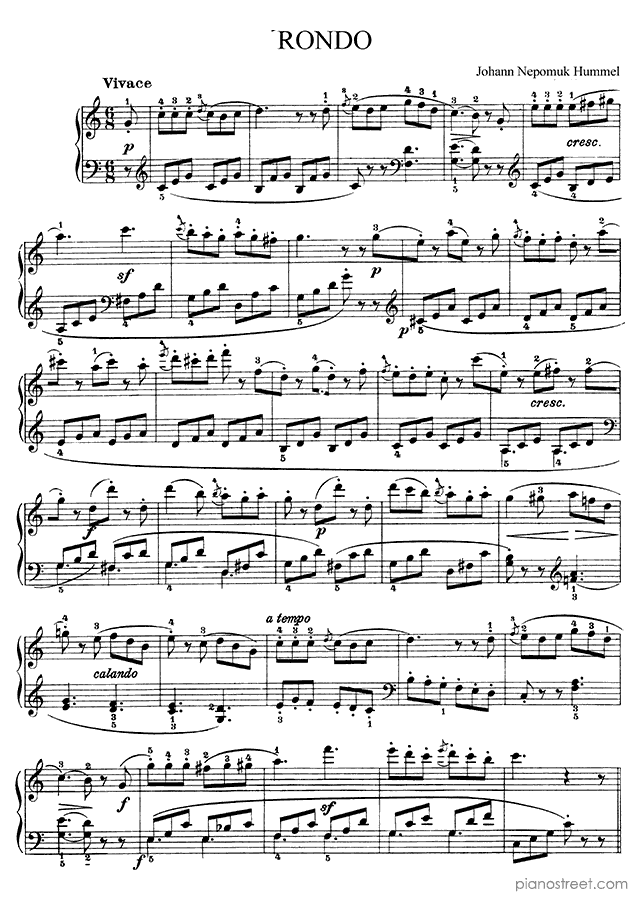 DOWNLOAD: Johann Nepomuk Hummel - Rondo in C Major ( by Hummel). Piano sheet music to print immediately or to view in mobile devices.