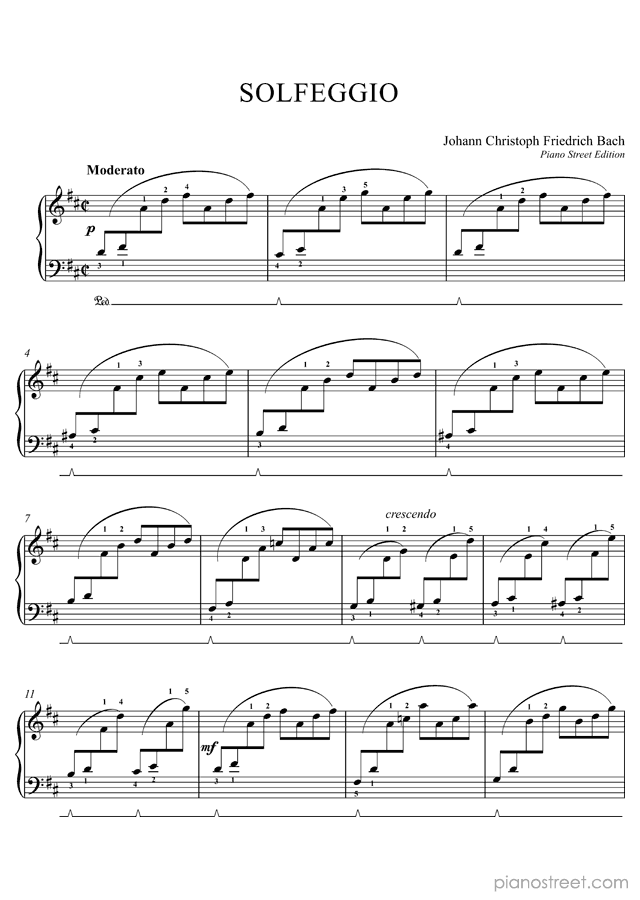 Solfeggio in D Major by Johann Christoph Friedrich Bach. Sheet music and recordings of thousands of piano pieces by Johann Christoph Friedrich Bach and many other famous composers to view in your digital device, print out or listen to.
