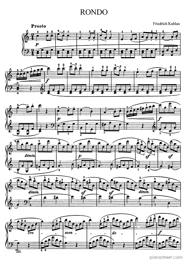 Friedrich Kuhlau: Rondo in C Major - piano sheet music to print instantly. This piece is level 4 and was composed during the Classical period.