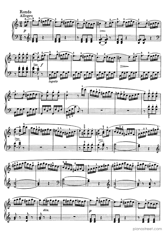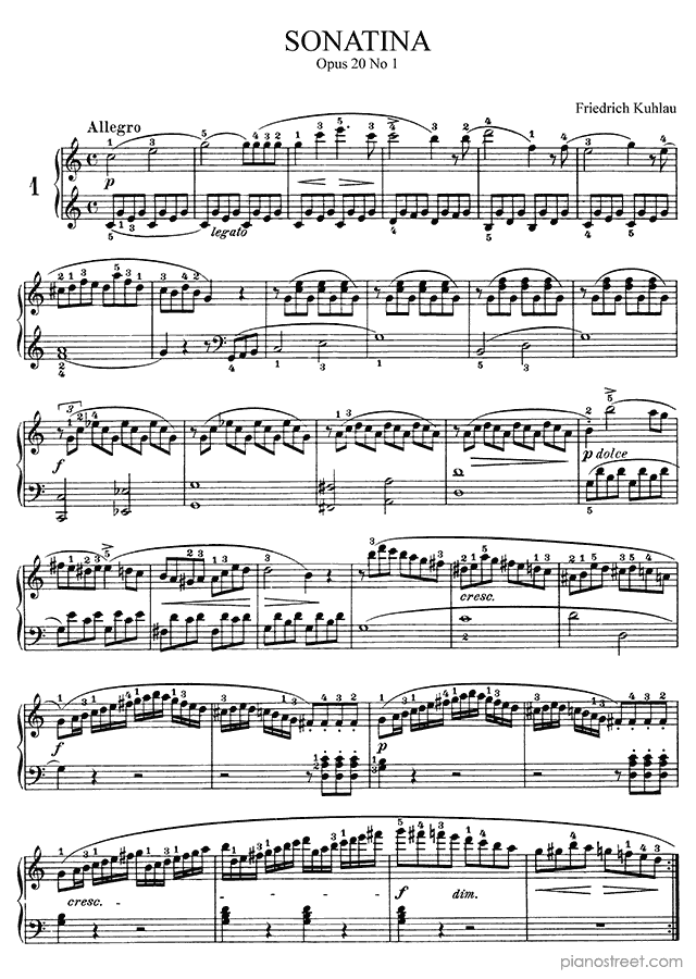 Classical piano sheet music by Friedrich Kuhlau to download and print instantly: Sonatina Op. 20 No. 1 in the key of . Level 5, compositional type: Sonata (published in 1819)