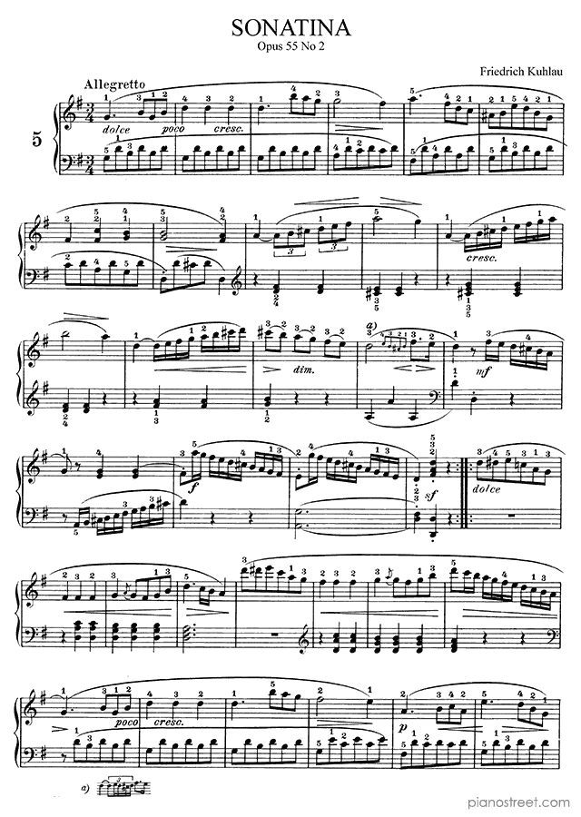 Sonatina in G Major Op. 55 No. 2 by Friedrich Kuhlau. Sheet music and recordings of thousands of piano pieces by Friedrich Kuhlau and many other famous composers to view in your digital device, print out or listen to.