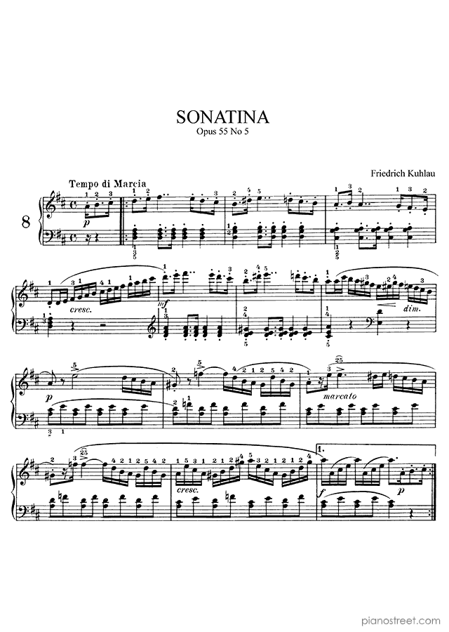 DOWNLOAD Sonatina in D Major Op. 55 No. 5 by Friedrich Kuhlau (published in 1823) . High quality classical piano scores from the Piano Street sheet music library.