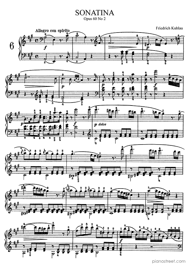 DOWNLOAD Sonatina in A Major Op. 60 No. 2 by Friedrich Kuhlau. High quality classical piano scores from the Piano Street sheet music library.