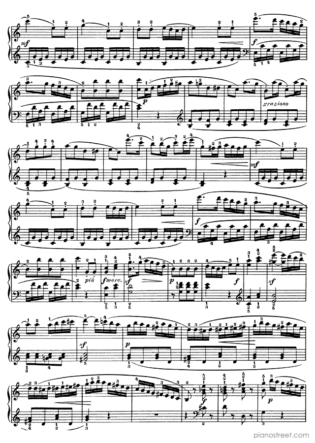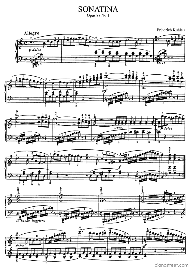 This piece is composed by Friedrich KuhlauThis piano piece was initially published in the year 1907. Title: Sonatina, Op. 88 No. 1 in C Major from Sonatinas. The difficulty level if graded by ABRSM would be approximately 6 and it belongs to the Classical period.