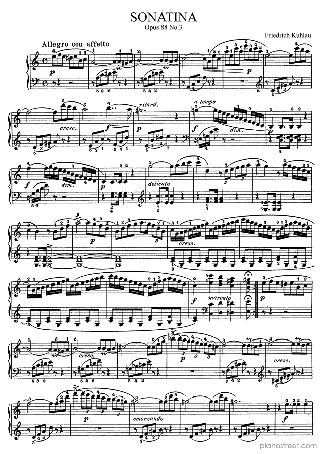 Sonatina in A Minor Op. 88 No. 3 by Friedrich Kuhlau. Sheet music and recordings of thousands of piano pieces by Friedrich Kuhlau and many other famous composers to view in your digital device, print out or listen to.