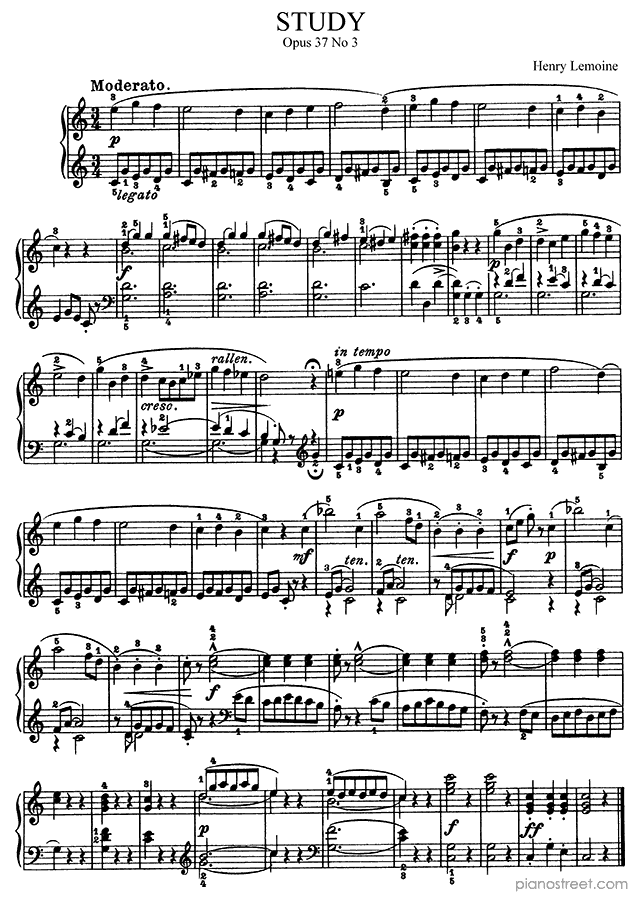 DOWNLOAD Piano Piece in C Major Op. 37 No. 3 by Henry Lemoine. High quality classical piano scores from the Piano Street sheet music library.