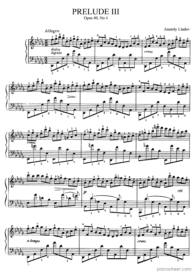 Downloadable piano sheet music by Anatoly Liadov to print: Prelude 3 Op. 40 No. 4 in D-flat Major (published in 1897)