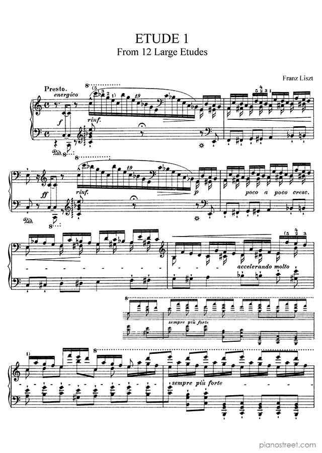 Classical piano sheet music by Liszt to download: Grand Etude No. 1 in the key of This piece has difficulty level 8+ in the category Study
