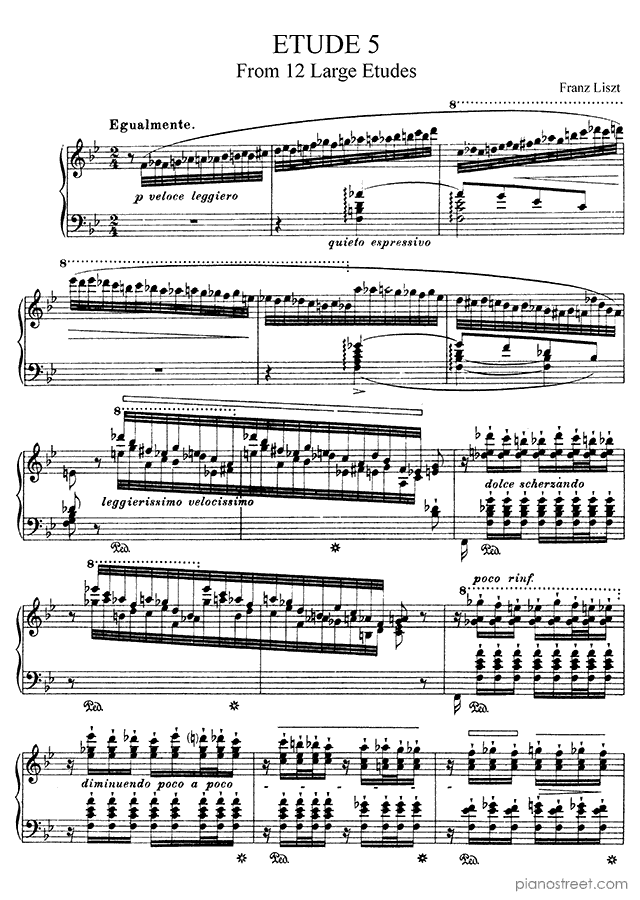 Liszt: Grand Etude No. 5 in B-flat Major (published in 1837) . DOWNLOAD piano sheet music from Piano Street digital sheet music library.