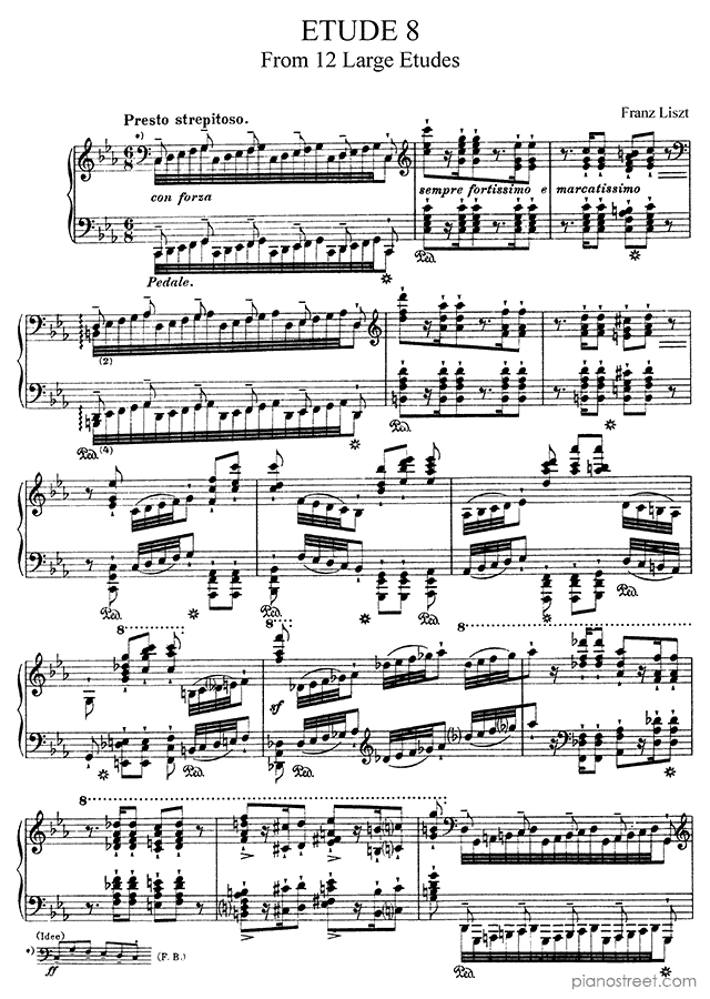DOWNLOAD: Franz Liszt - Grand Etude No. 8 in C Minor ( from 12 Grand Etudes by Liszt). Piano sheet music to print immediately or to view in mobile devices.
