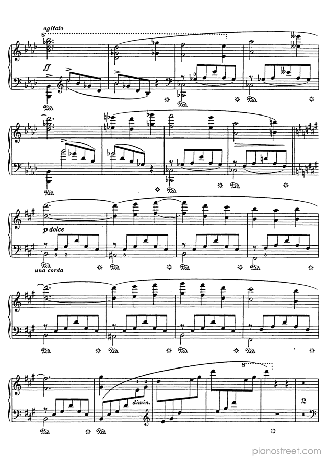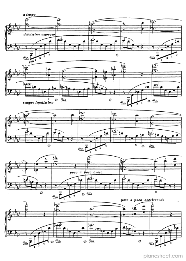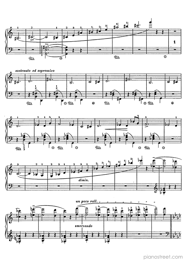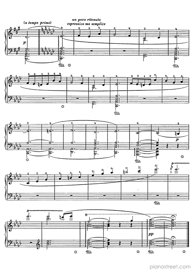 Downloadable piano sheet music from 2 Elegies by Franz Liszt to print: Elegy no 2 S. 197 in A-flat Major (published in 1877)